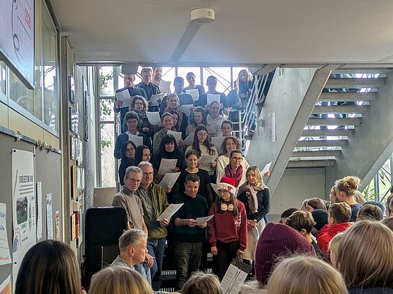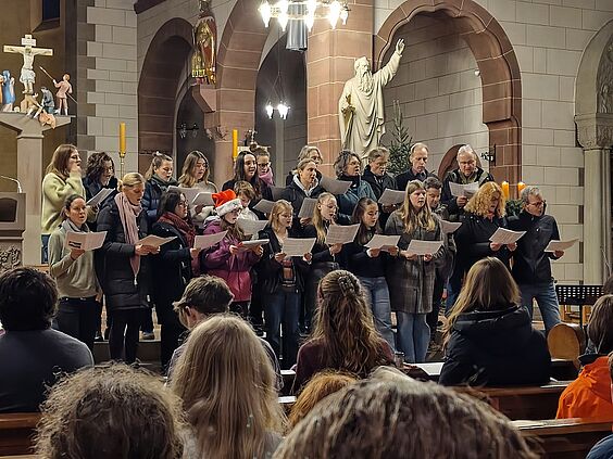 Unterstützt wurde der Gottesdienst auch vom Lehrerchor und der Chor-AG, die gleich zu Beginn mit Lean on Me von Bill Withers und am Ende des Gottesdienstes zum Mitklatschen und -singen anregte. Ein großes Dankeschön an dieser Stelle an Herrn Matz, Frau Huff und Frau Münch für ihre Arbeit.