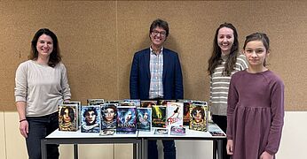Josephine Weber, Schülerin der Klasse 5c, wollte den Wiederaufbau unterstützen und schrieb daher eine E-mail an ihre Lieblingsautorin Katja Brandis. Unter den Bücherwürmern hat sich die Bestseller-Autorin insbesondere durch ihre Woodwalker-, Seawalker,- Windwalker-Reihen, die zum Teil bereits verfilmt worden sind, eine große Fangemeinde erarbeitet. „Sie haben mich zur Leseratte gemacht.“, schrieb Josephine sie an und bat um Hilfe. „Sie können ganze Filme machen, (…) vielleicht können Sie uns helfen.“ Und Katja Brandis antwortete prompt. Nicht nur mit aufmunternden Worten sprach sie Mut zu, sondern schickte auch ein großzügiges Paket voller Bücher für den Neuaufbau der Bücherei. „Hoffentlich werden die Täter geschnappt“, schrieb sie Josephine.