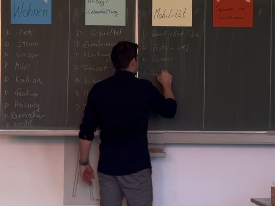 Die Themen, die angeschnitten wurden, waren Wohnen und Nebenkosten, Lebenshaltungskosten, Einnahmen und Geldverwaltung sowie Verträge, Steuern, Rechte. Unterkategorien waren beispielsweise „Umgang mit Schulden/Dispo“ oder „Mobilität“. Hierzu durften die Schüler:innen auch selber recherchieren und eigene Ideen einbringen.